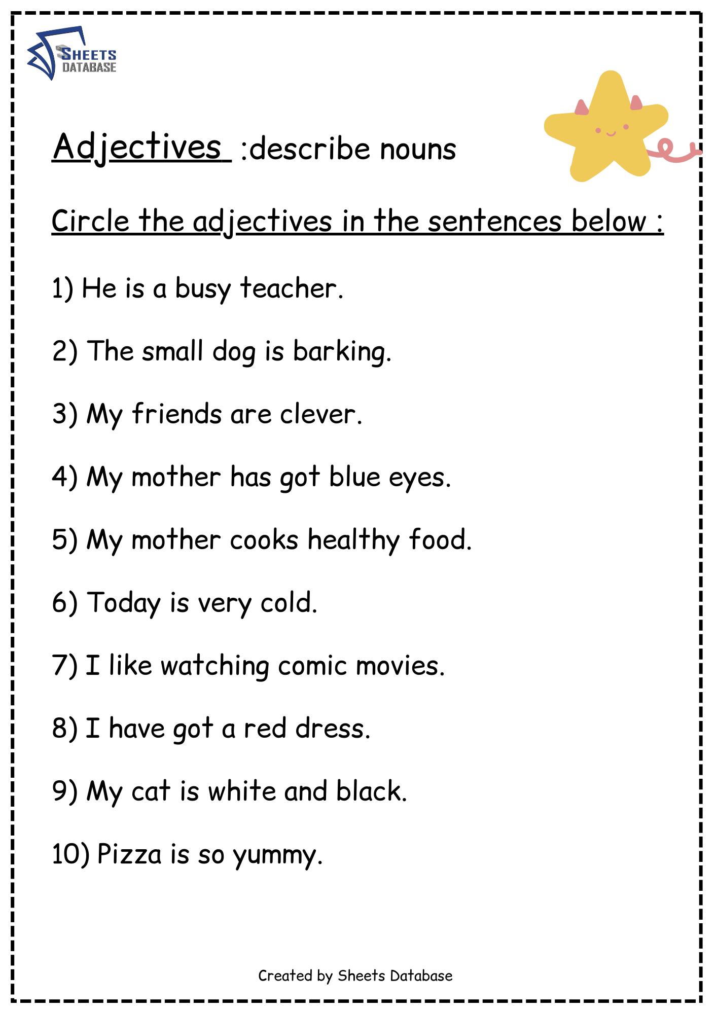 - Circle the Adjectives – Students identify and circle adjectives in given sentences, reinforcing their understanding of descriptive words.