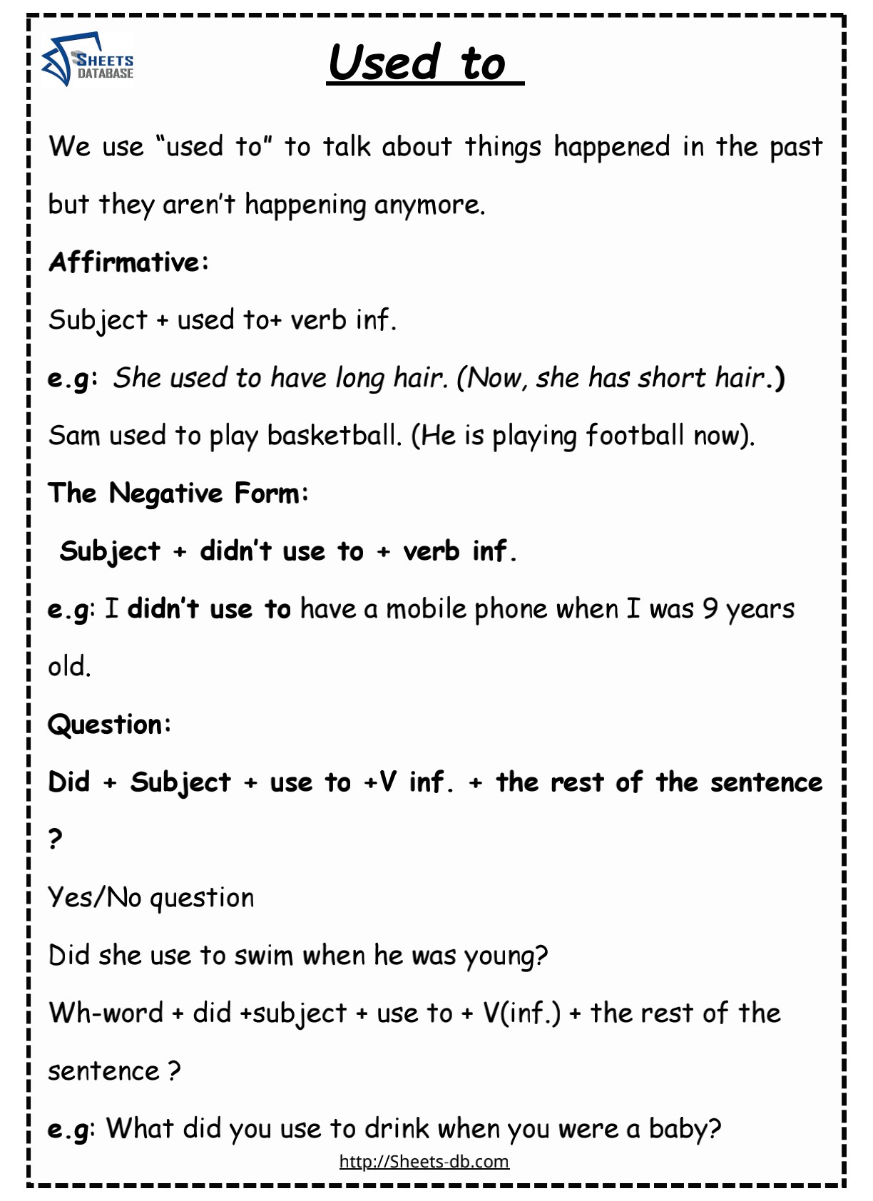 Used To Grammar Worksheets are a fantastic tool for improving your understanding of past habits and changes. Download them now and enhance your English skills!