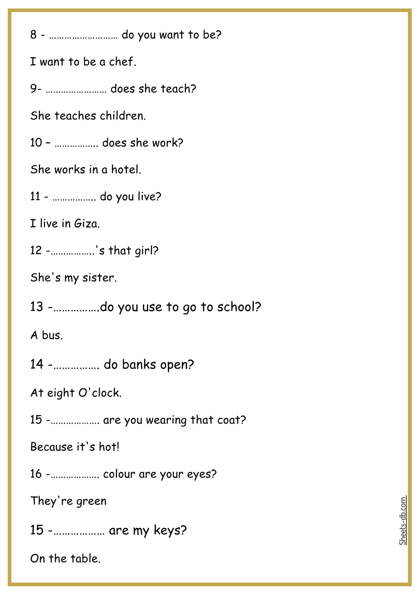 Question words, also known as WH-words, are used to ask for specific information. Mastering these words helps in forming clear and meaningful questions. This article explains the different question words, their uses, and includes practice exercises.
