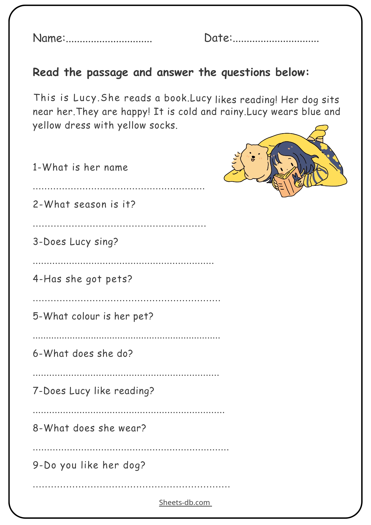Our carefully crafted worksheet includes a short passage about Lucy, followed by engaging questions to test comprehension.