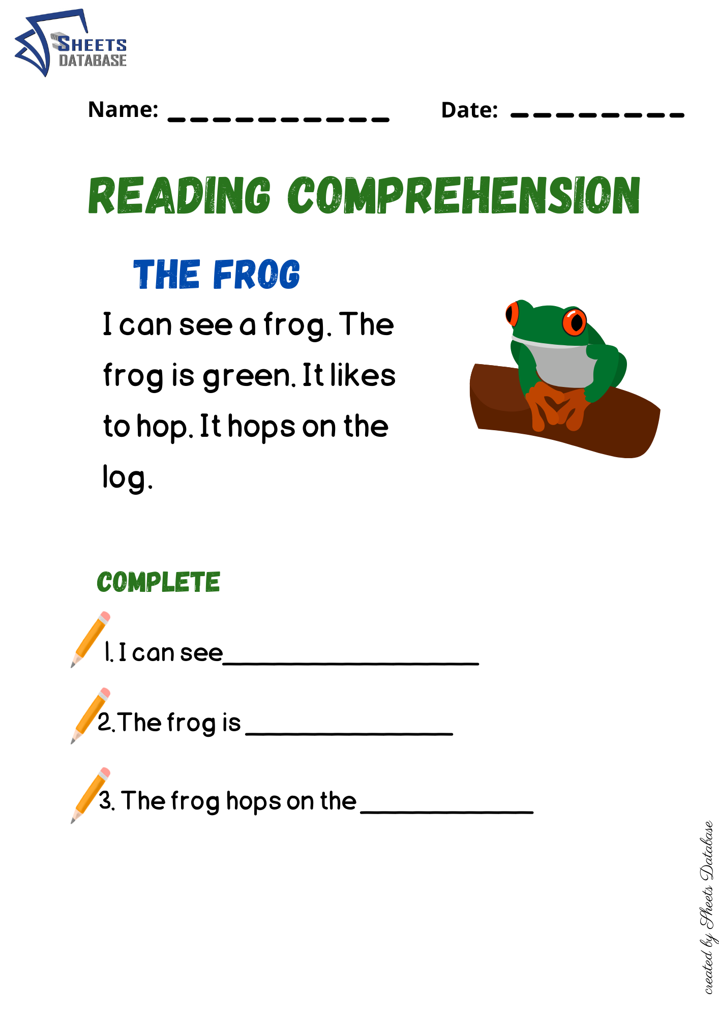 - Questions encourage students to recall key details (“The frog is ____.”).