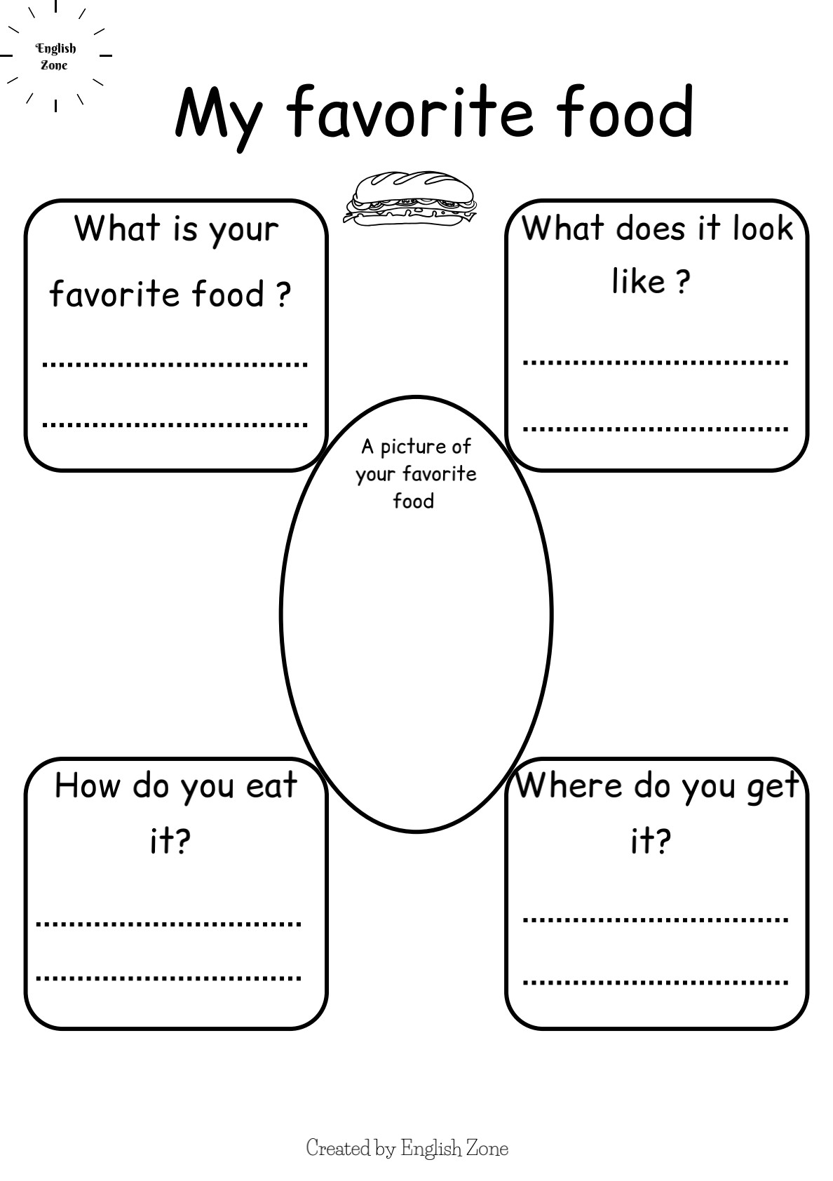A fun prompt that helps children describe their favorite food, how it looks, where they get it, and how they eat it. This activity strengthens vocabulary and descriptive writing skills.